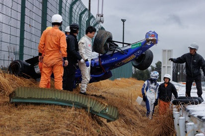 鈴鹿の130Rでバリア超え大クラッシュのブラウニング、無傷でマシンから脱出。逆さまに落下も「HANSが僕の首を守ってくれた」